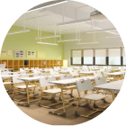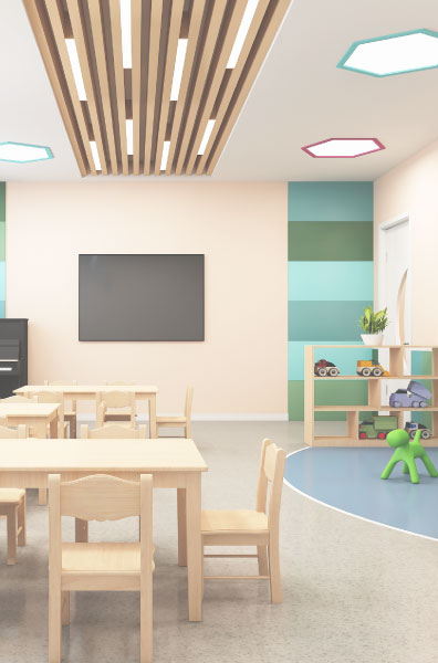 学校对于空间环境的洁净要求,我们选用绿色环保的原材料, 低消耗、低污染,可回收、确保产品不释放对人体有害的物质